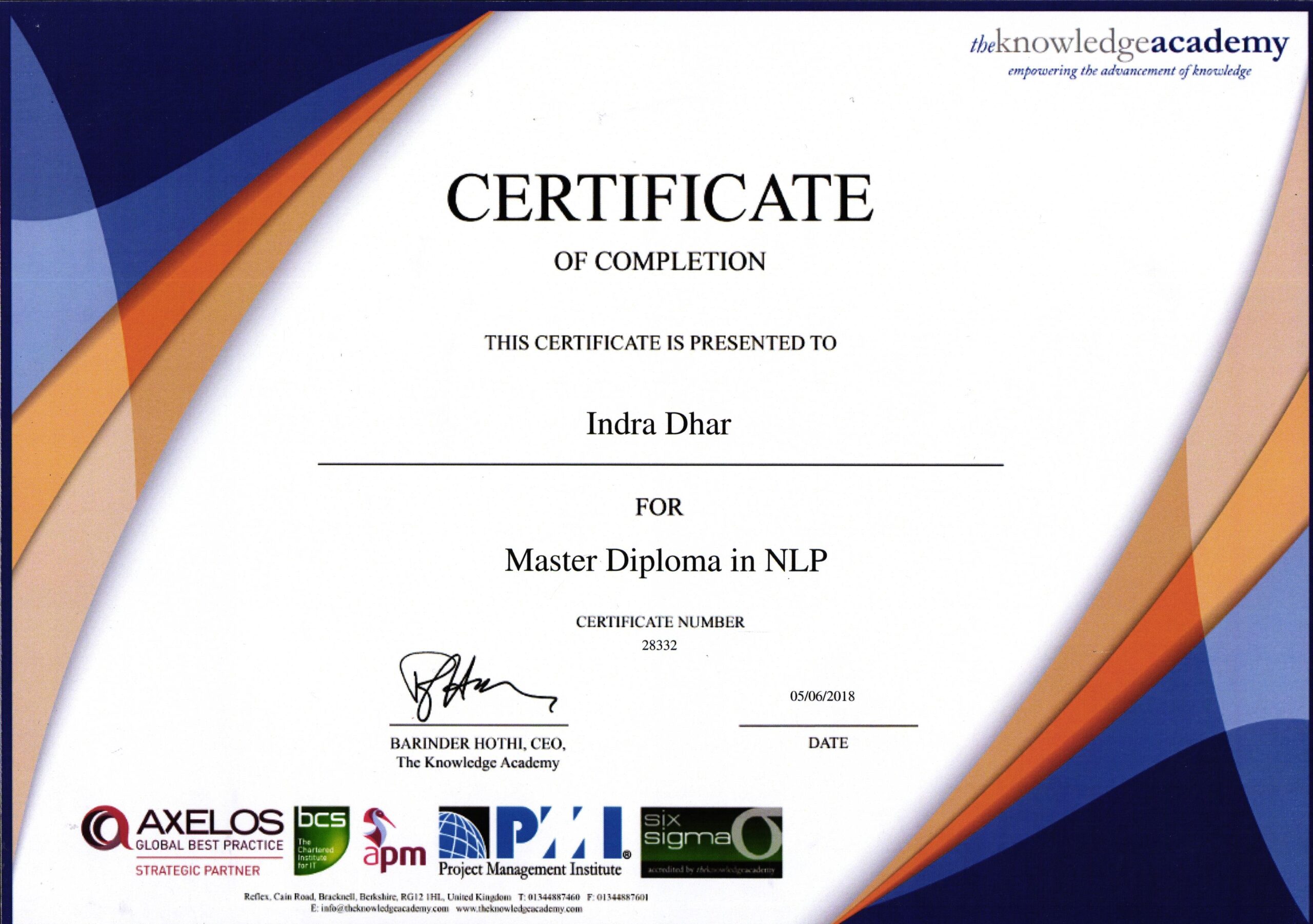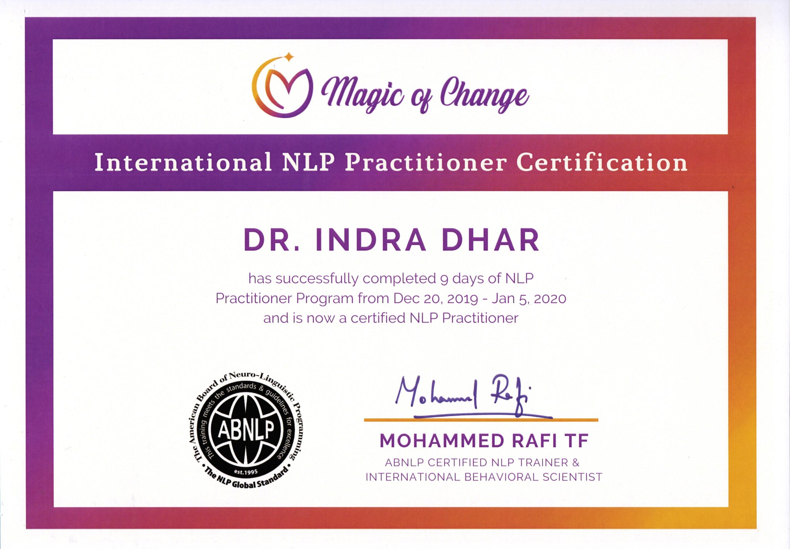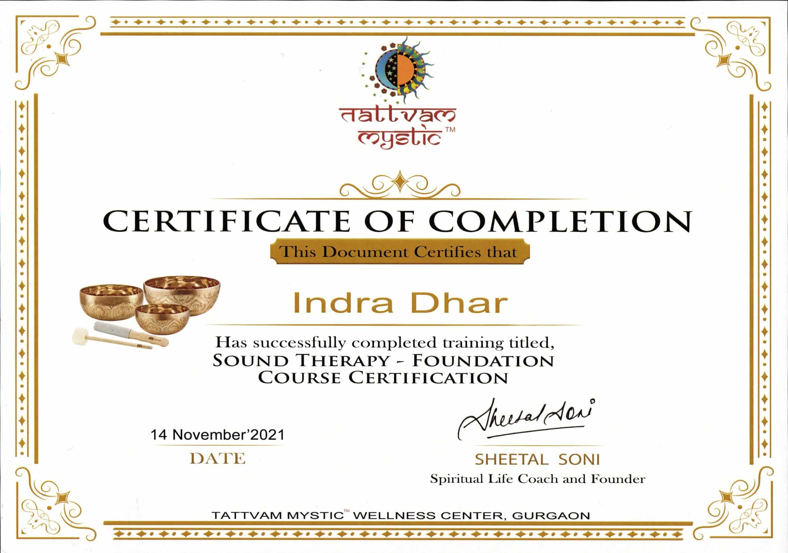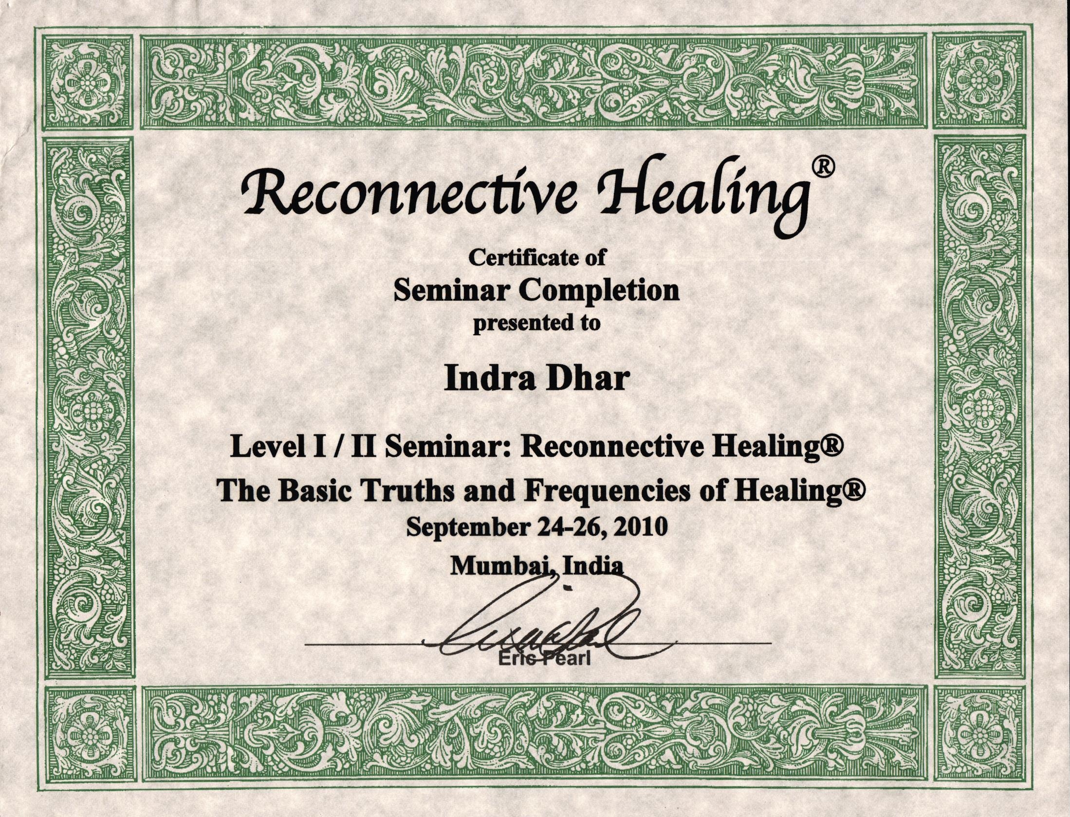 By Re-connective Healing- Certificate of Completion of course on Frequencies of Healing