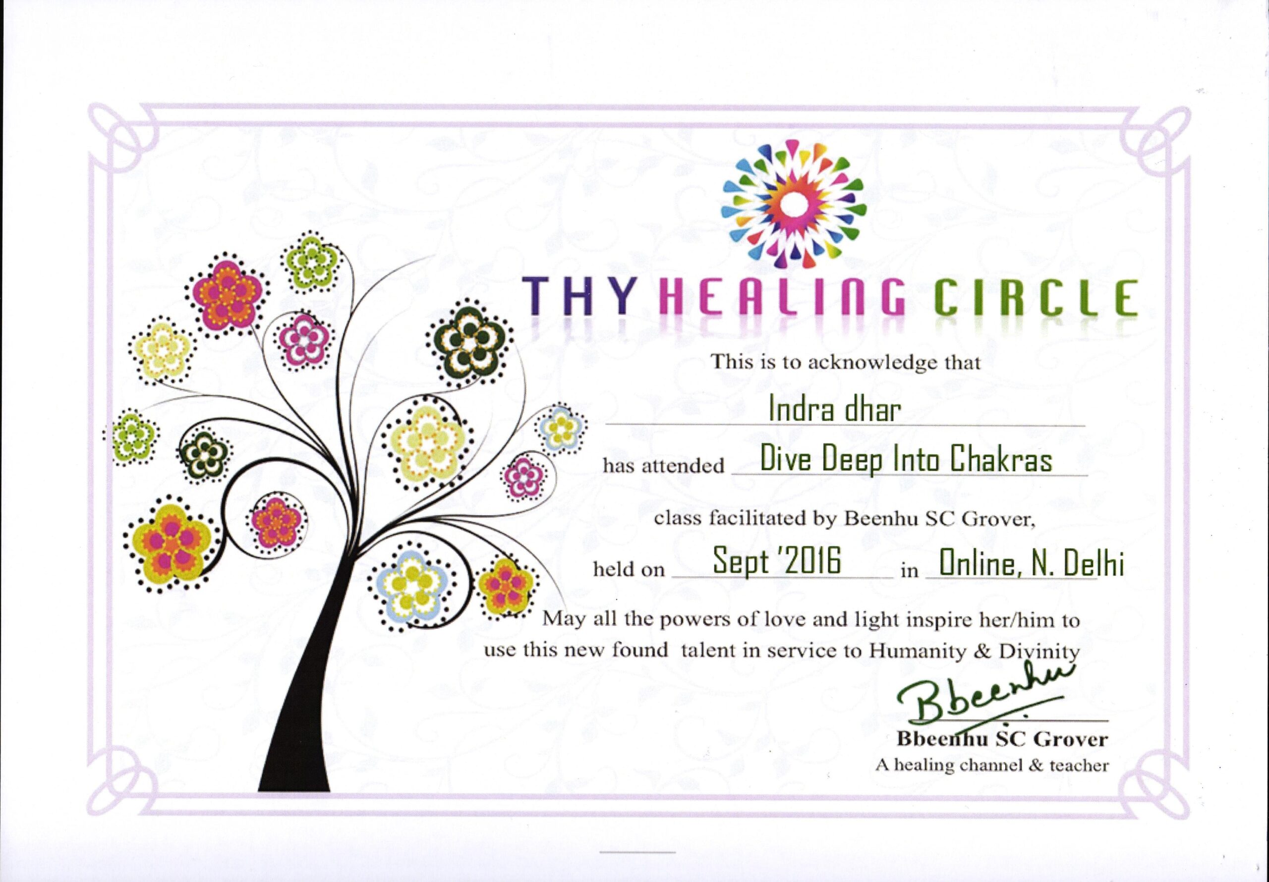By- The Healing Circle- For Successful Completion of Course on Dive Deep into Chakras