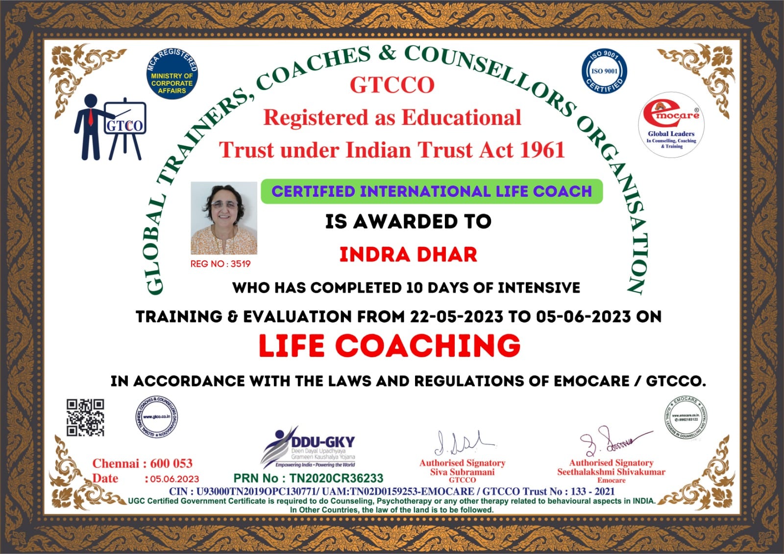 Global Trainers, Coaches & Counsellors Organisation- Certified International Life Coach